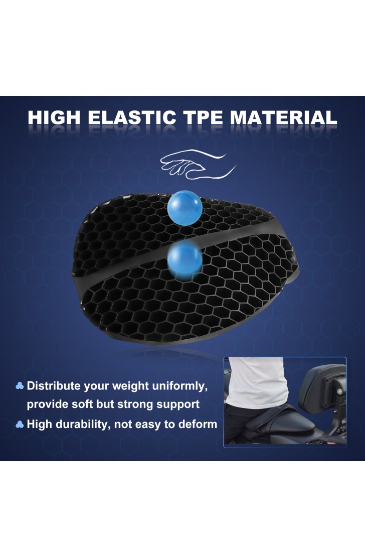 · Shock absorption: motorcycle gel seat cushion is made from a highly-elastic gel material inside, which can provide enough cushioning and shock absorption, providing much-needed relief to your hips and tailbone, and greatly reducing the numbness of long-term riding
